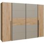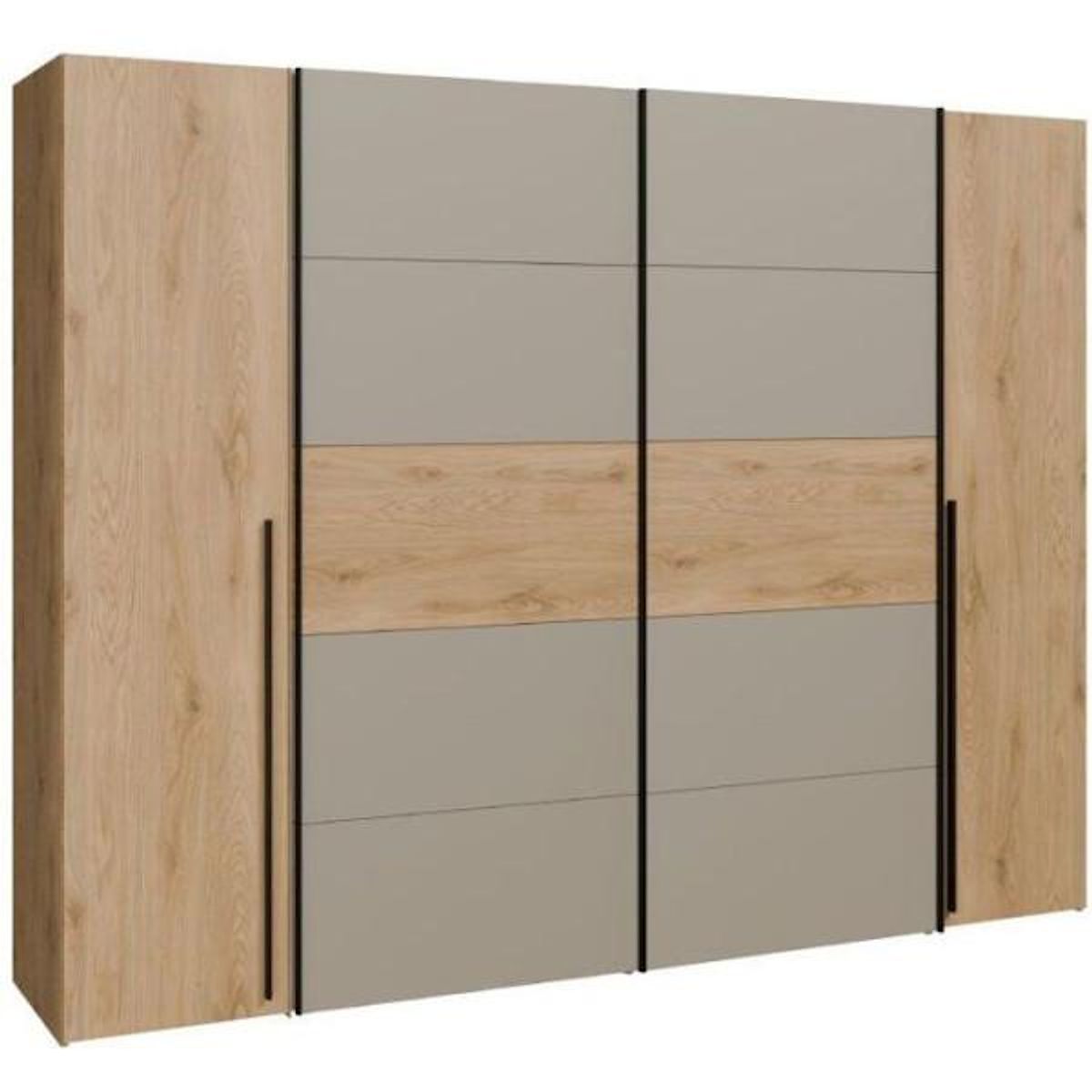 Armoire de chambre - NARAGO - Décor Chene et Taupe - 2 portes coulissantes + 2 portes battantes - L270 x P61 x H210 cm