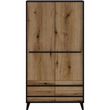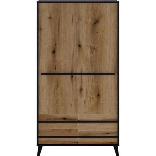 Armoire HEKA 2 portes + 4 tiroirs - Décor noir et chene - L100 x P50 x H180 cm - Fabriqué en Espagne