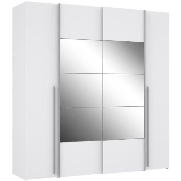 Armoire NARAGO - Décor Blanc mat - 2 portes coulissantes + miroir + 2 portes battantes + 2 penderies - L200 x P61 x H210 cm
