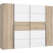 Armoire NARAGO - Décor Chene Sonoma et blanc mat - 2 portes coulissantes + 2 portes battantes - L270 x P61 x H210 cm
