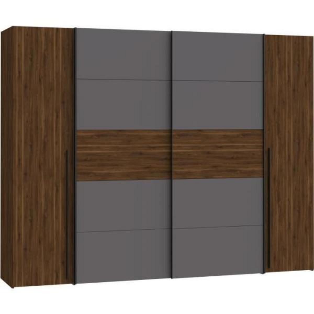 Armoire NARAGO - Décor Noyer Bakersfield et gris - 2 portes coulissantes + 2 portes battantes - L270 x P61 x H210 cm
