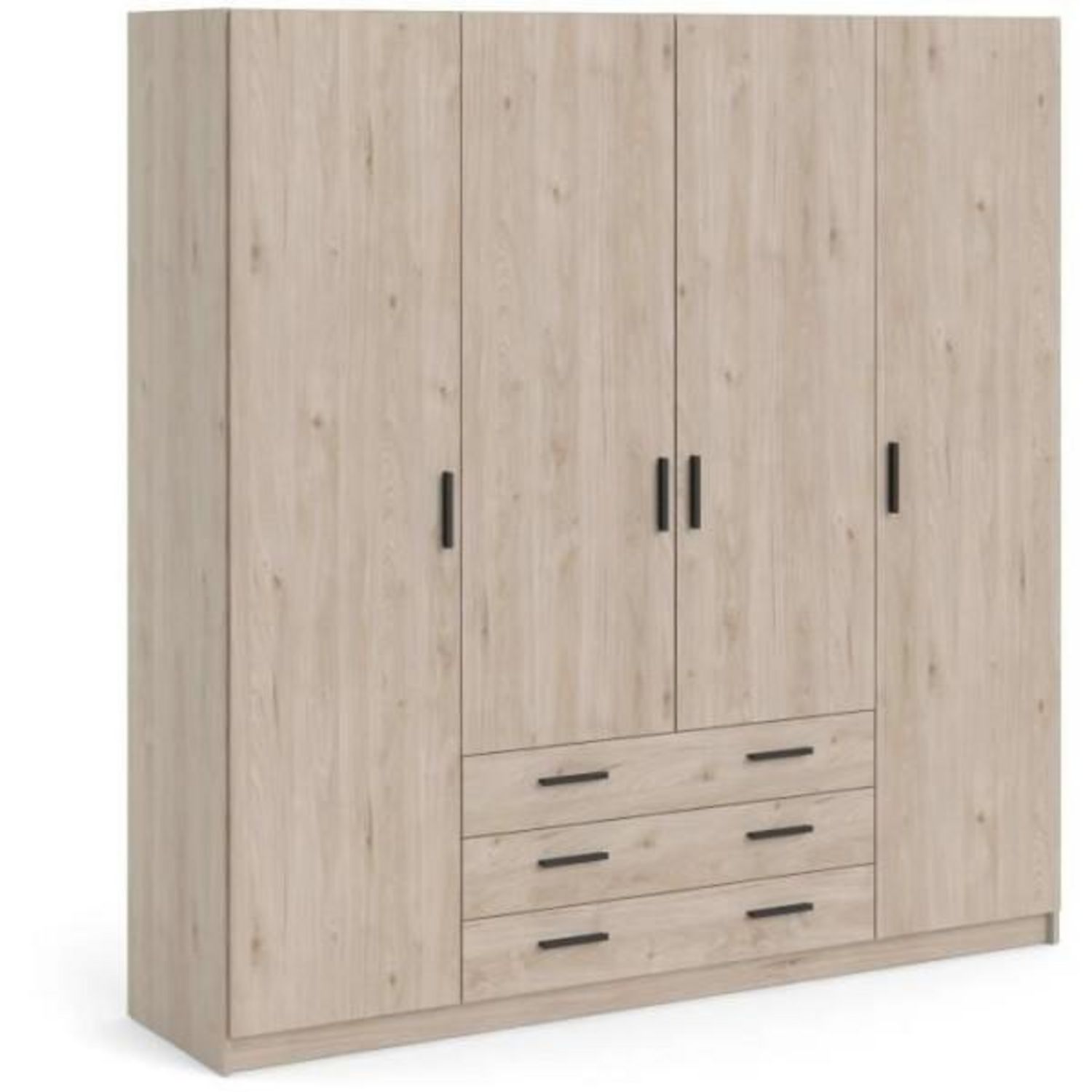 Armoire VEGA - Décor Chene Jackson - 4 portes + 3 tiroirs - L 195,5 x P 49,6 x H 200,4 cm
