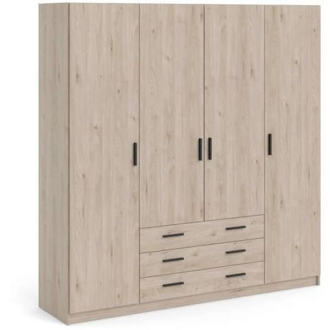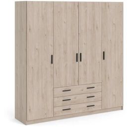 En panneaux de particules, chene Jackson, 4 portes, 3 tiroirs,- L 195,5 x P 49,6 x H 200,4 cm