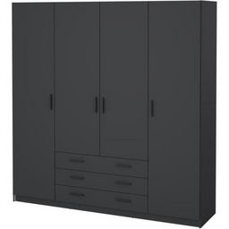 Optez pour l'armoire VEGA 4 portes et 3 tiroirs, de couleur gris mat. Cette armoire de qualité supérieure est conçue dans un design élégant et moderne. Elle offre un grand espace de rangement pour vos vetements et accessoires. Les portes et les tiroirs sont faciles a ouvrir et a fermer. Créez un intérieur qui vous ressemble grâce a cette armoire.