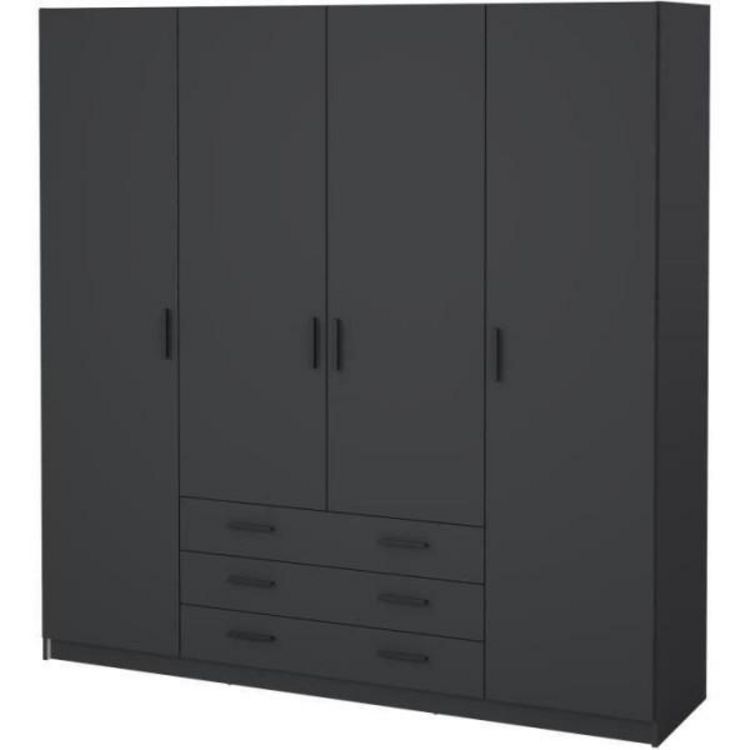 Armoire VEGA - Décor Gris anthracite - 4 portes + 3 tiroirs - L 195,5 x P 49,6 x H 200,4 cm