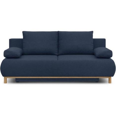 Banquette convertible 3 places MIKA - Tissu bleu foncé - Coffre de rangement - L 192 x H 84 x P 93 cm