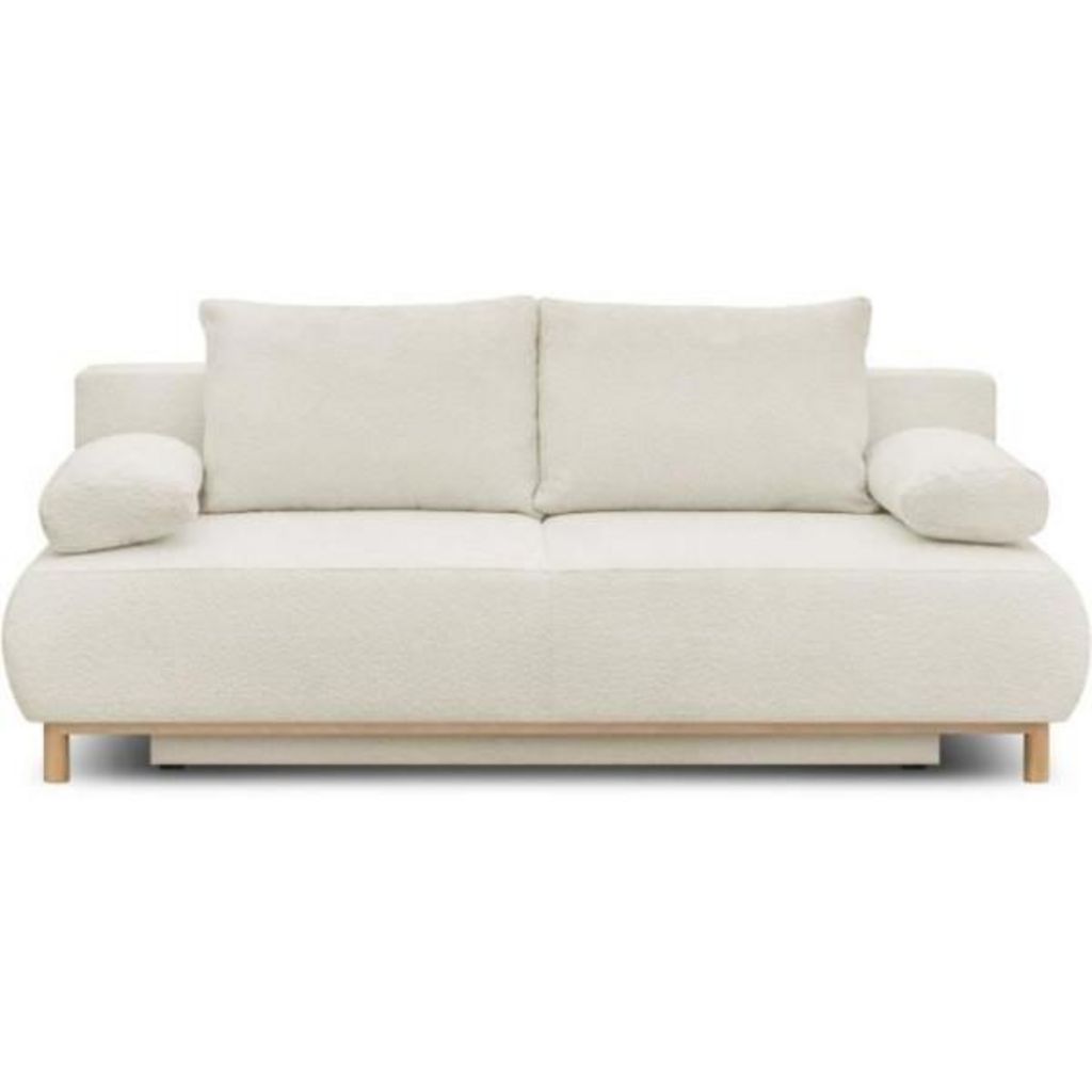 Banquette convertible 3 places MIKA - Tissu Bouclette beige - Coffre de rangement - L 192 x H 84 x P 93 cm