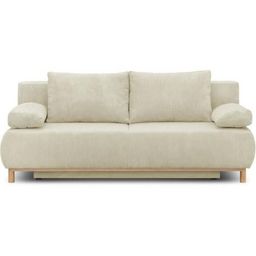 Banquette convertible 3 places MIKA - Velours côtelé Beige - Coffre de rangement - L 192 x H 84 x P 93 cm