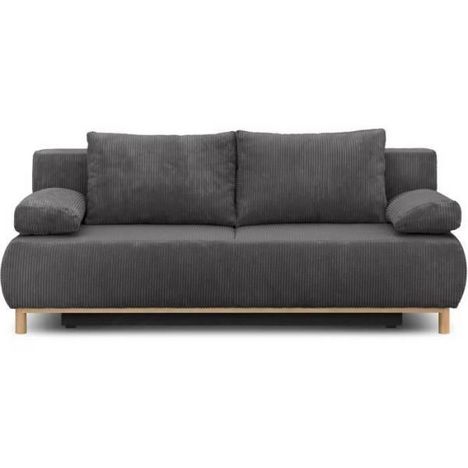 Banquette convertible 3 places MIKA - Velours côtelé gris foncé - Coffre de rangement - L 192 x H 84 x P 93 cm