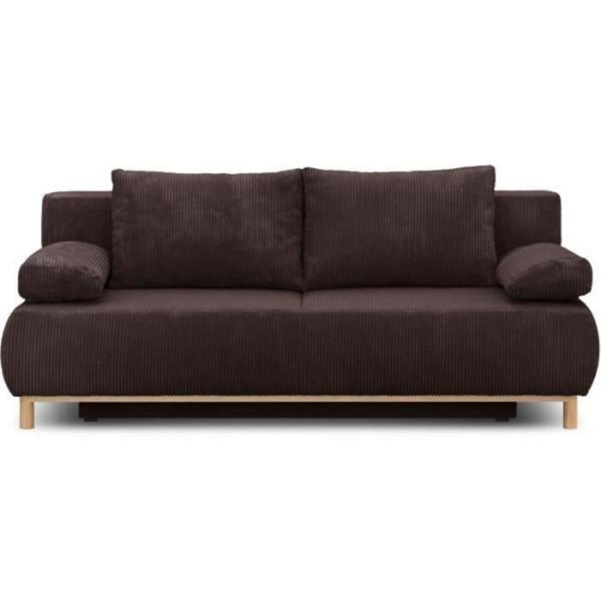 Banquette convertible 3 places MIKA - Velours côtelé marron foncé - Coffre de rangement - L 192 x H 84 x P 93 cm