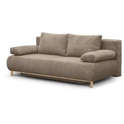 Banquette convertible - 3 places - MIKA - Velours côtelé Taupe - Avec coffre de rangement - 192 x 93 x 84 cm