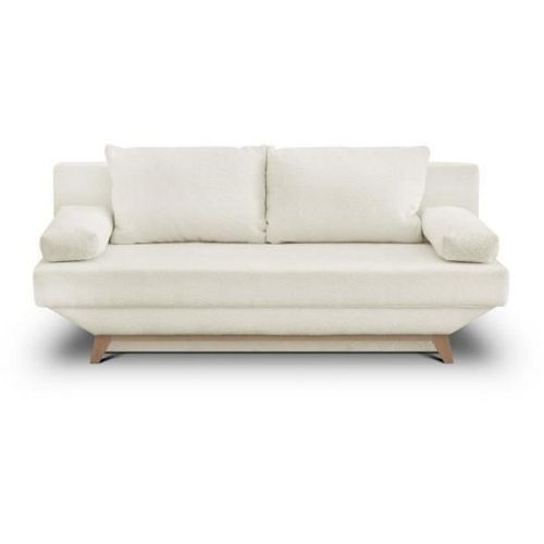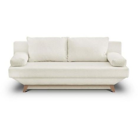 Banquette convertible 3 places TEIJO - Tissu bouclette beige - Coffre de rangement - L187 x P91x H82 cm