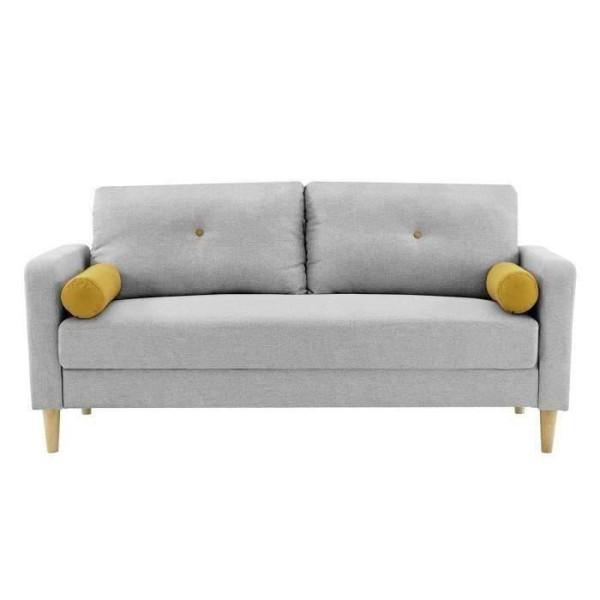 Canapé 3 places + 2 coussins - Tissu Gris clair - L 175 x P 80 x H 85 cm - COPENHAGUE