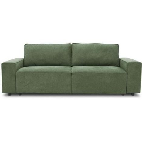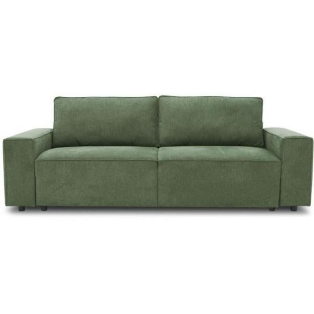 Canapé convertible 3 places JOSH - Tissu Loft Olive - Coffre de rangement - L 239 x P 117 x H 65 cm