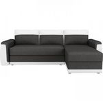 En savoir +Le canapé d'angle convertible JAMES est un meuble contemporain et design. Avec sa structure en panneaux de particules, contreplaqué et hetre, il est revetu d'un simili blanc et d'un tissu gris anthracite. Il est ferme et possede une assise de L190 x P54 cm. Il est convertible en un couchage de L122 x L190 cm et possede un coffre de rangement.