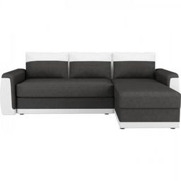 Canapé d'angle convertible 3 places JAMES- Simili blanc et tissu gris anthracite - Contemporain - L 230 x P 142 cm