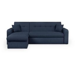 Le canapé d'angle convertible ROMAN est idéal pour un salon moderne et contemporain. Avec son tissu bleu foncé facile a nettoyer, il dispose d'un grand coffre de rangement sous la méridienne pour ranger vos plaids. Il se transforme rapidement en un lit pour deux personnes (130 x 190 cm) pour un couc