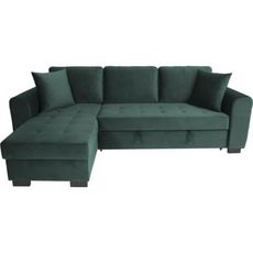 Canapé d'angle convertible HAMILTON 4 places - Tissu velours vert - L 245 x P 140 x H 86 - Coffre de rangement