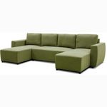 Canapé d'angle convertible panoramique PHARELL 5/6 places - Tissu olive - Coffre de rangement - L297 x P155 x H85 cm