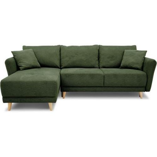 Canapé d'angle convertible réversible 3-4 places CLAUDIUS - Tissu Vert Olive - Coffre de rangement - L 244 x P 158 x H 95 cm