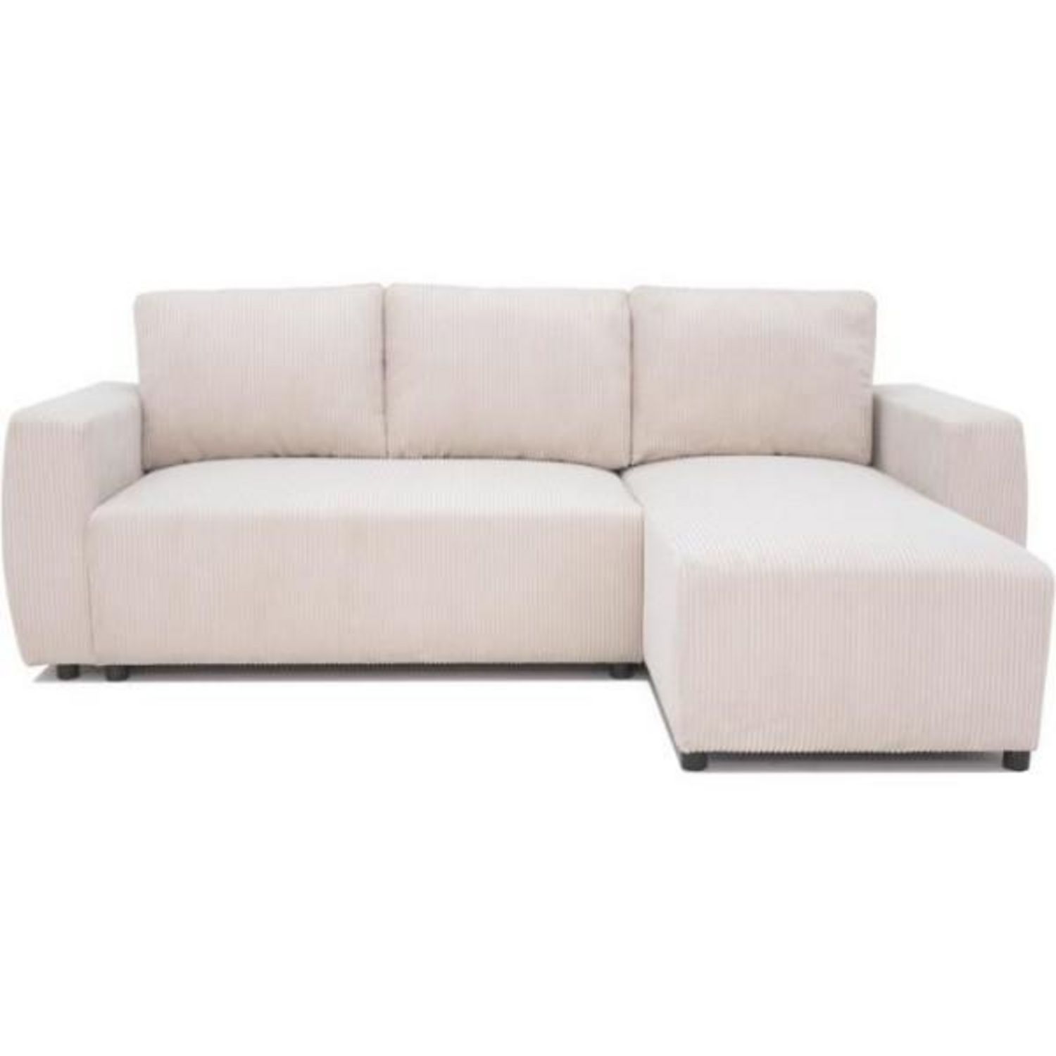 Canapé d'angle convertible réversible 3-4 places PHARELL - Velours côtelé beige - Coffre de rangement - L 230x P 155 x H 95