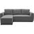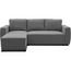 Canapé d'angle convertible 3 a 4 places, réversible, avec coffre de rangement en tissu anthracite. Dimensions : L 224 x P 155 x H 71/85 cm. Couchage : 122x191x7cm. Densité de la mousse : 25kg/m3. Matériaux : panneau de particules, bois dur, Isorel, panneau de copeaux.