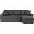 Canapé d'angle convertible réversible Hamilton en tissu gris 100% polyester. Structure en bois massif pins et hetre, panneaux de particules et contreplaqué. Pieds plastique noir. Suspension ressort en métal type no-sag. Assise mousse polyuréthane 25kg/m3. Coussins de dos en mousse polyuréthane 21kg/