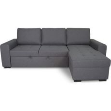 Canapé d'angle convertible réversible 3 places avec coffre - Tissu gris - L 242 x P 155 x H 85 cm - CATHY