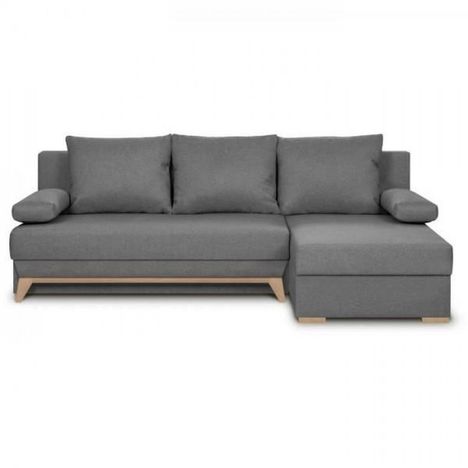 Canapé d'angle convertible - Tissu Gris - L 197 x P 91/132 x H 82 cm - TEIJO