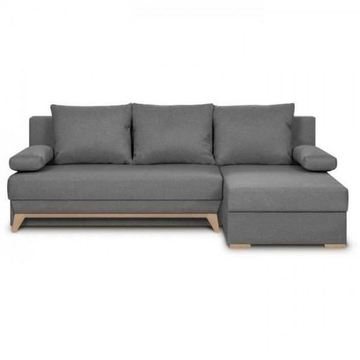 En savoir +Canapé d'angle réversible et convertible TEIJO en tissu gris avec coffre de rangement. Structure en pin massif certifié FSC et panneaux de particules, suspension d'assise en ressorts biconiques, garnissage du coussin d'assise en mousse de polyuréthane 30kg/m3 et des coussins de dossier en flocons de mousse de polyuréthane 25 kg/m3. Pieds bois massif a l'avant et plastique a l'arriere.