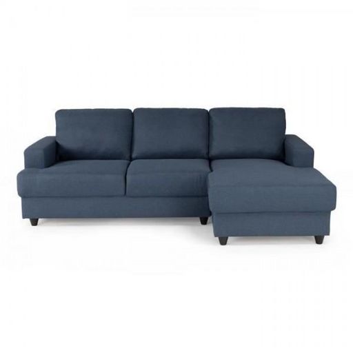 PAUL Canapé d'angle droit 4 places bleu - Style et design contemporain - Structure en pin massif contreplaqué et panneaux de particules - Tissu 100% polyester - Assise en mousse polyuréthane 25kg/m3 - Dos mousse polyuréthane 21kg/m3 - Coussins garnis de ouate et fibre 150gr/m2 - Pieds en plastique