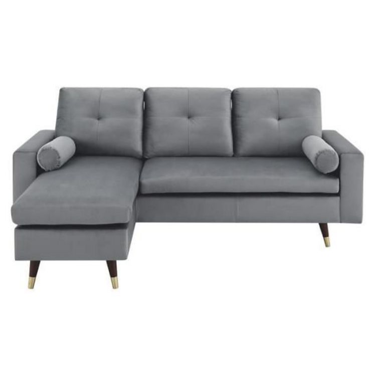 Canapé d'angle fixe réversible - Tissu gris - L 194 x P 139 x H 83 - Pieds bois et doré - NEW YORK
