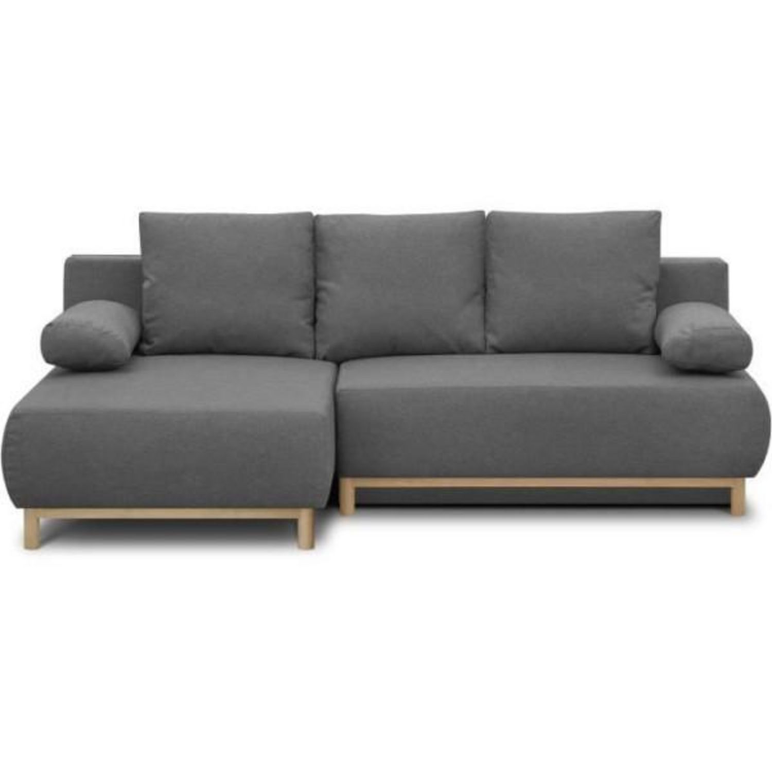 Canapé d'angle gauche convertible MIKA 3 places - Tissu gris clair - Coffre de rangement - L218 x P98/145 x H84 cm