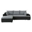 CELINA Canapé d'angle réversible convertible 3 places noir et gris - Structure en panneaux de particules - Revetement tissu 100% polyester - Assise garnie de mousse, densité 30 kg/m3 - Doté d'un coffre sous l'assise de la méridienne - Livré avec 2 coussins - Couchage d'appoint 150 x 190 cm - Assise