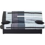 Le clic clac DREAM est un canapé convertible en lit d'appoint occasionnel. Il est recouvert d'un tissu 100% coton imprimé Piste Gris et dispose d'un coffre de rangement. Avec ses dimensions de L190 x P92 x H96 cm, il peut accueillir jusqu'a 3 personnes en position assise et offre un couchage de 125