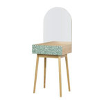 Coiffeuse 1 tiroir 1 miroir en décor chene et vert avec pieds en bois massif. Dimensions : L 50 x P 40 x H 135 cm. Marque : GARDENIA.