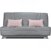 COMFORT BULTEX Banquette clic clac - Tissu Gris + Coussins déco rose - L193 x P95 cm