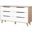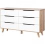 Commode 6 tiroirs - En panneaux de particules - Décor chene et blanc - Contemporain - L 154 x P 42 x H 86 cm
