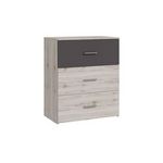 Commode ADRIA 3 tiroirs : Ajoutez une touche d'élégance et de modernité a votre chambre avec cette magnifique commode. Papier décor chene cendré avec des finitions en gris uni. Cette commode offre un design épuré et contemporain. Ses trois tiroirs spacieux vous permettent de ranger vos vetements et