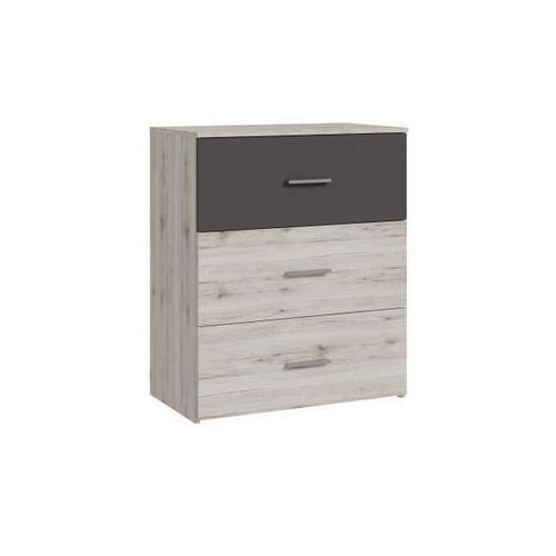 Commode - ADRIA - 3 tiroirs - Chene cendré / Gris uni - L75x P41 x 90 cm