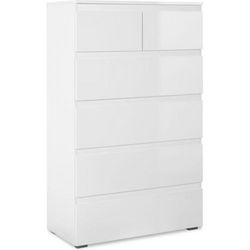 Commode CAPETOWN - Décor blanc brillant - 6 Tiroirs - L80 x H131,5 x P40 cm