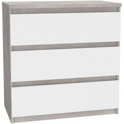 Commode CHELSEA 3 Tiroirs - Couleur blanc/béton clair - L 77,2 x P 42 x H 79,9 cm