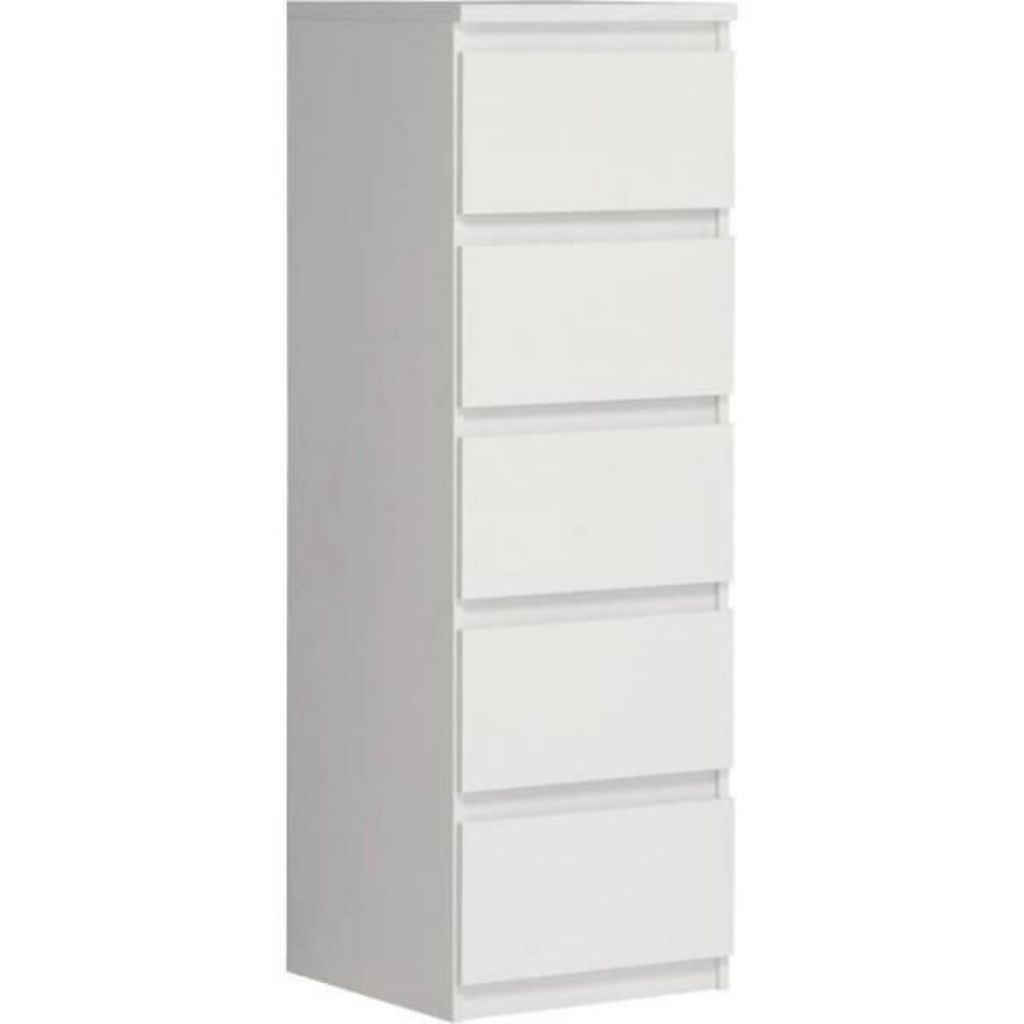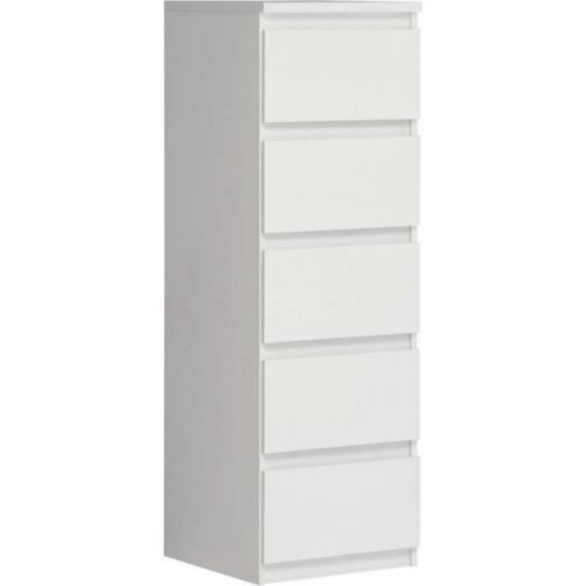 Commode CHELSEA 5 tiroirs - L 41,8 x P 42,2 x H 128,1 cm- Décor blanc mat