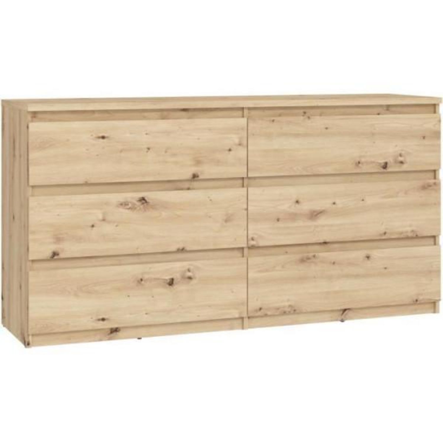 Découvrez la commode CHELSEA avec ses 6 tiroirs spacieux et son design intemporel. Fabriquée en bois de qualité, elle apportera une touche de alte a votre intérieur. Ses dimensions de L 154 cm x P 42,2 x H 79,9 en font un meuble pratique et fonctionnel. Son décor chene artisan lui confere un aspect bois naturel. Montage facile a faire soi-meme.