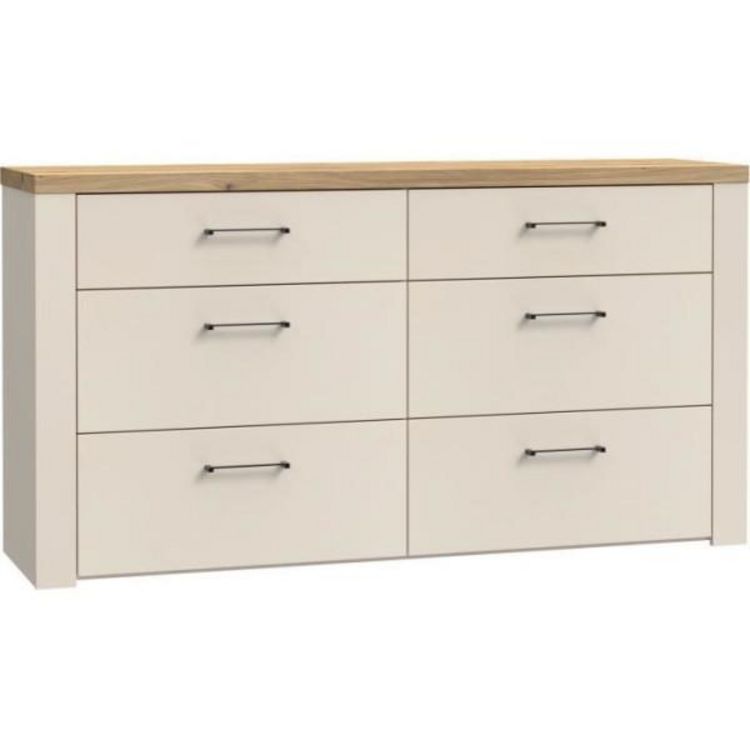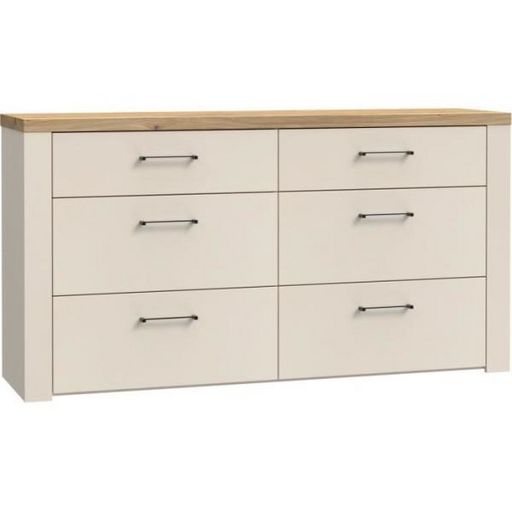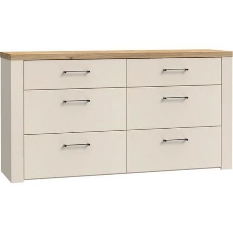 Commode - NELLEKE - 6 tiroirs - Sable / Bois - L156,3 x P41,3 x H83,1 cm
