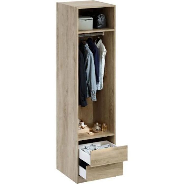 Dressing - Décor Chene - 2 tiroirs - 2 étageres - 1 tringle - L50 x P57 x H200 cm