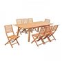 Ensemble repas de jardin extensible 6 a 8 personnes. 1 table extensible 180/240x100x75 cm + 8 chaises pliantes : 57,5x46,5x90 cm - Eucalyptus FSC - Couleur du bois : naturel