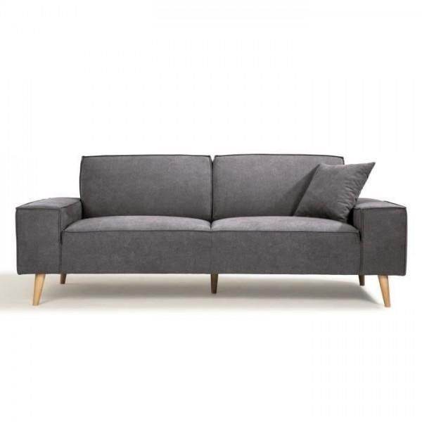 Hexagone - Canapé droit 3 places - Tissu Gris - L 216 x P 90 x H 80 cm - Gustave