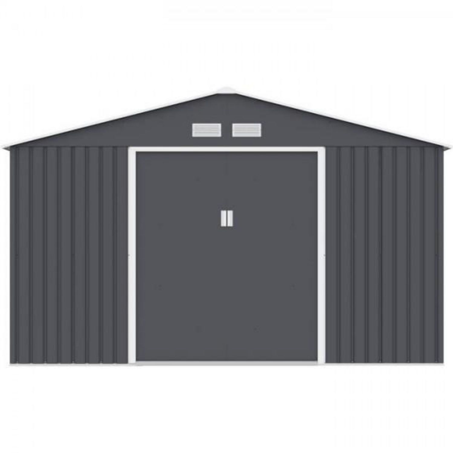 JUPITER Abri de jardin en métal 10,85 m² - 340 x 319 x 210 cm - Kit d'ancrage inclus, 2 portes coulissantes - Gris