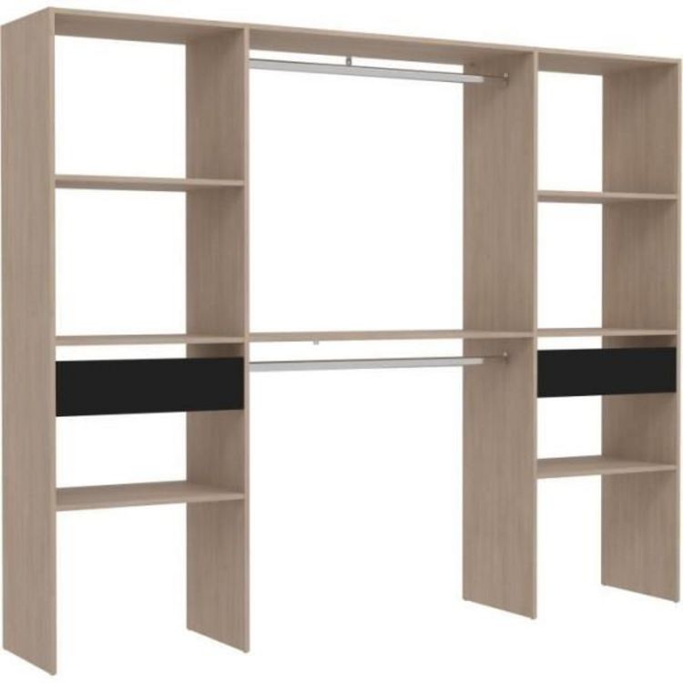 Kit dressing ARTIC EKIPA - Décor mélaminé chene jackson et noir - 2 penderies + 2 tiroirs- L220 x P40 x H180 cm -Fabriqué en
